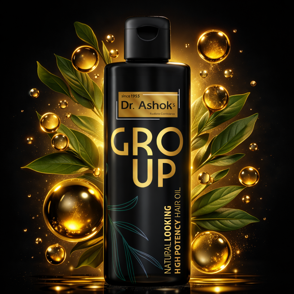 Dr. Ashok’s Gro Up Hair Oil is formulated to nourish hair roots and improve hair strength. Regular use helps maintain healthy, shiny, and naturally strong hair.
